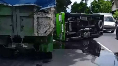 Akibat manuver mendadak tersebut, minibus oleng dan terguling di badan jalan sebelum akhirnya menabrak truk pasir. Minibus mengalami kerusakan parah, sementara truk yang dikemudikan Agung Prasetyo dari Desa Tambakrejo, Blitar, mengalami kerusakan pada bagian depan. Pengemudi truk selamat tanpa luka, namun delapan orang di dalam minibus mengalami luka-luka.